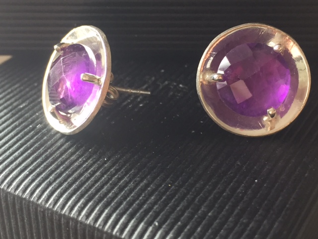 Boucles d'oreilles clou surmontés de grandes améthystes