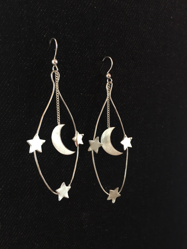 Très jolies boucles d'oreilles pendantes en argent sterling.