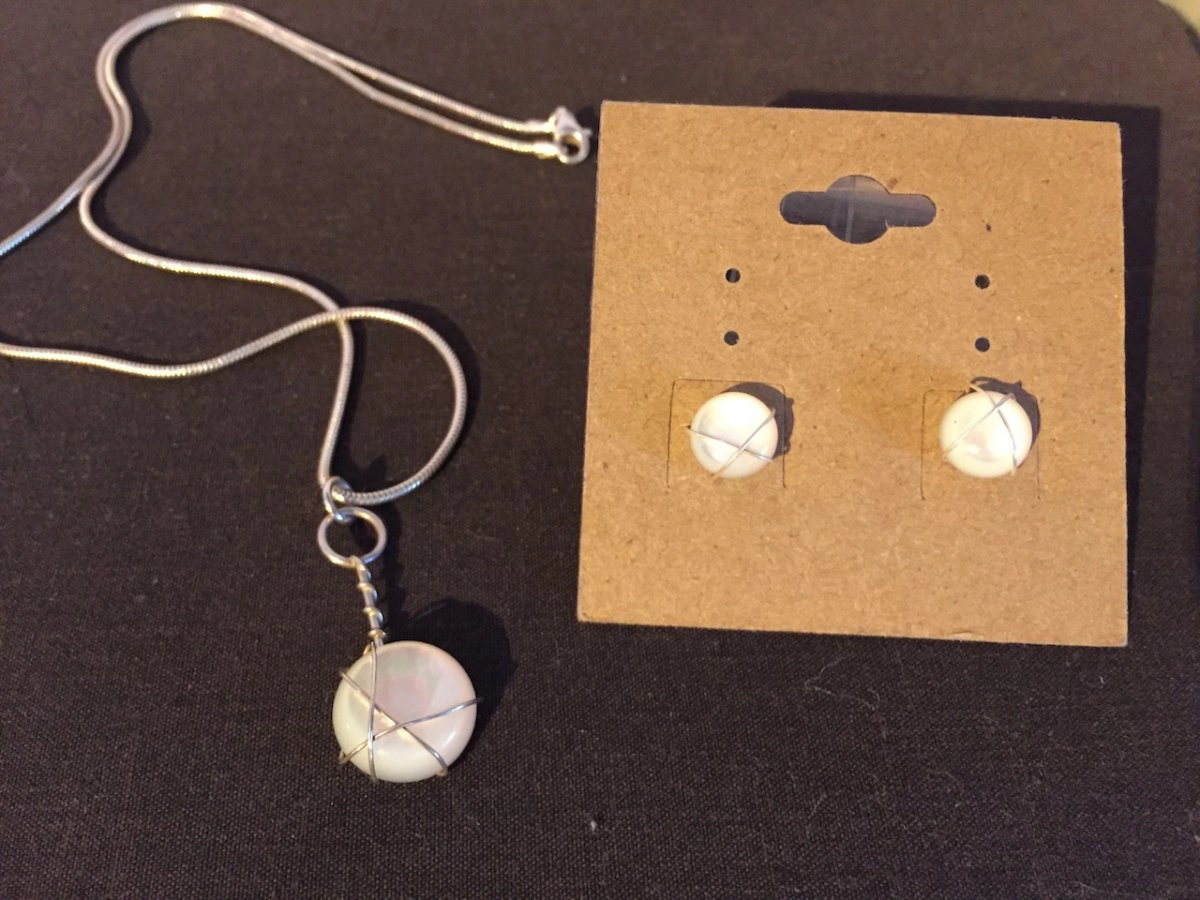 Le nacre est entouré d'un fil d'argent de 0,4mm.