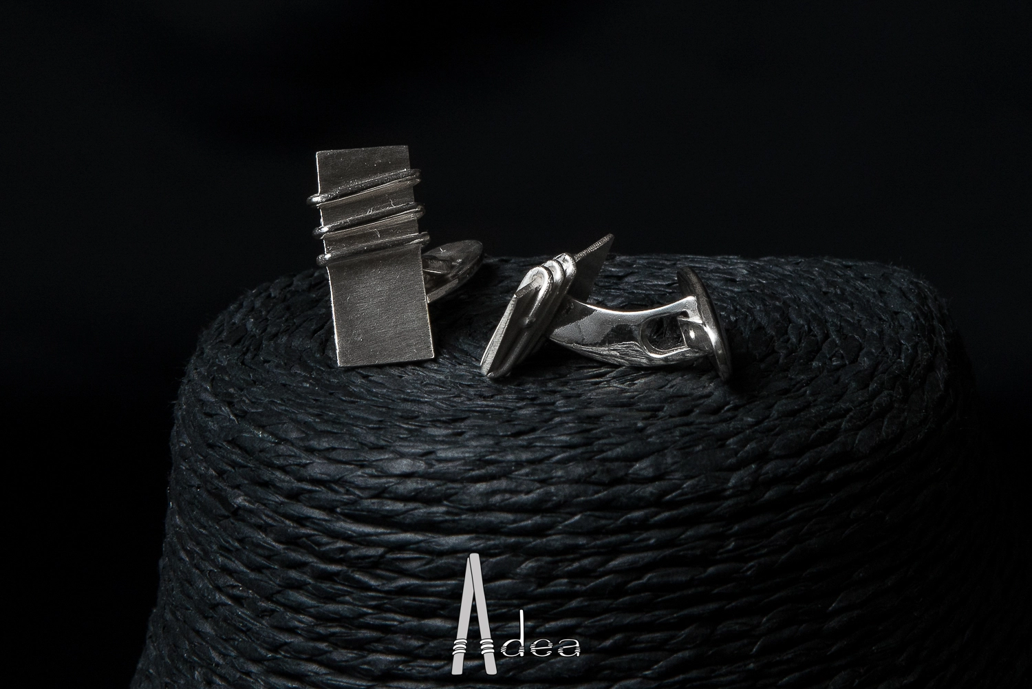 Boutons de manchette en argent sterling avec rayures d'argent.