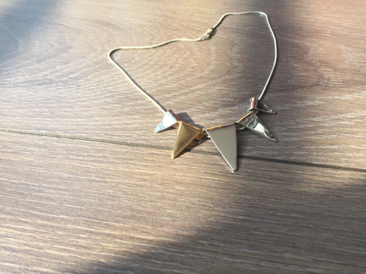 Collier mailles serpents avec 5 drapeaux en argent. Un des drapeaux est plaqué or.