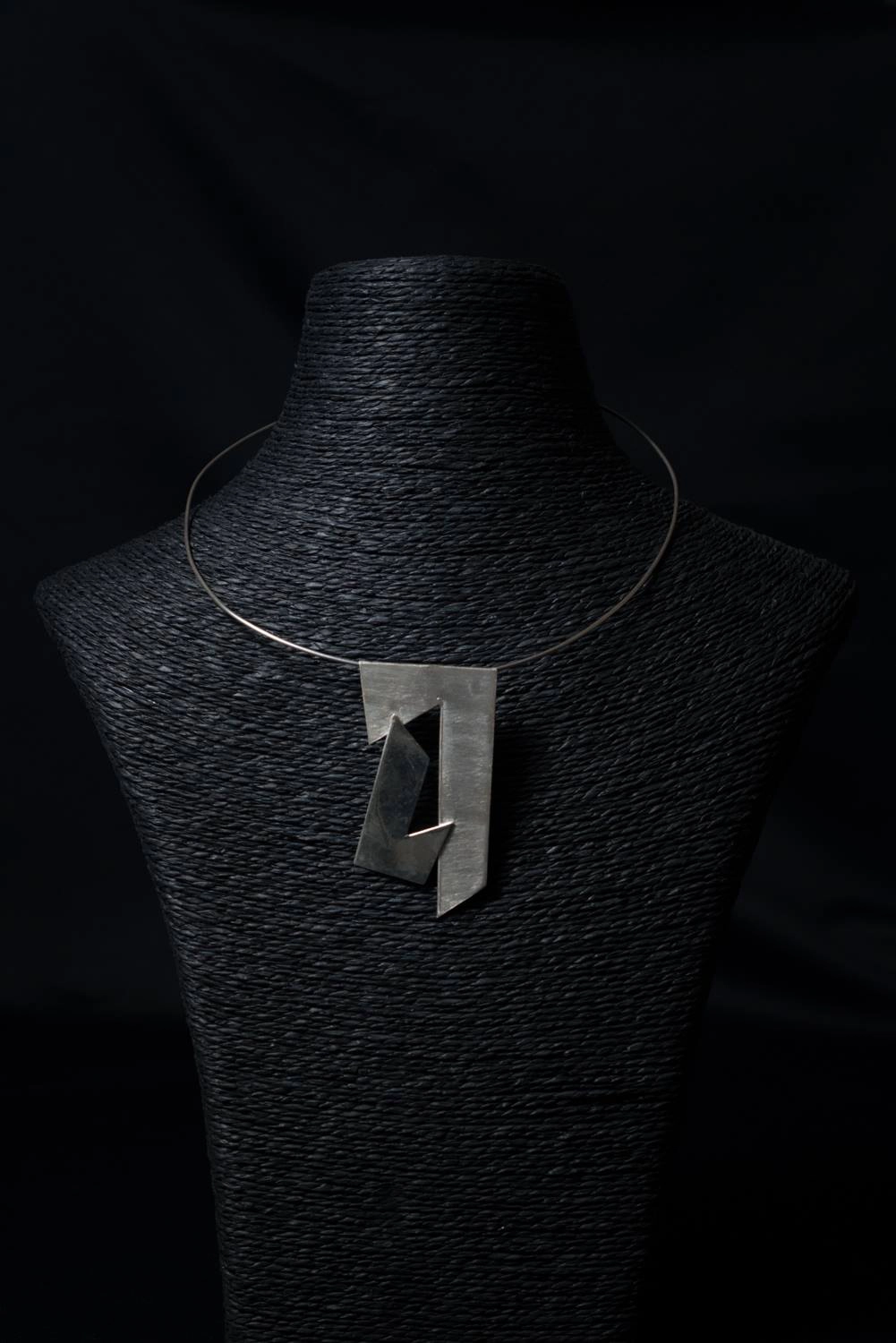 Grand pendentif géométrique avec mix de textures: une partie matte et une partie brillante