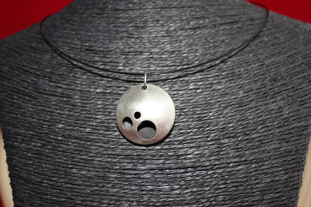 Pendentif en alpaca emboutis avec trous. Intérieur oxydé