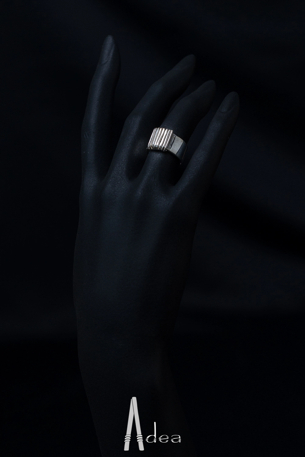 Bague épaisse et fil d'argent enrouléBijoux (Rayures) :