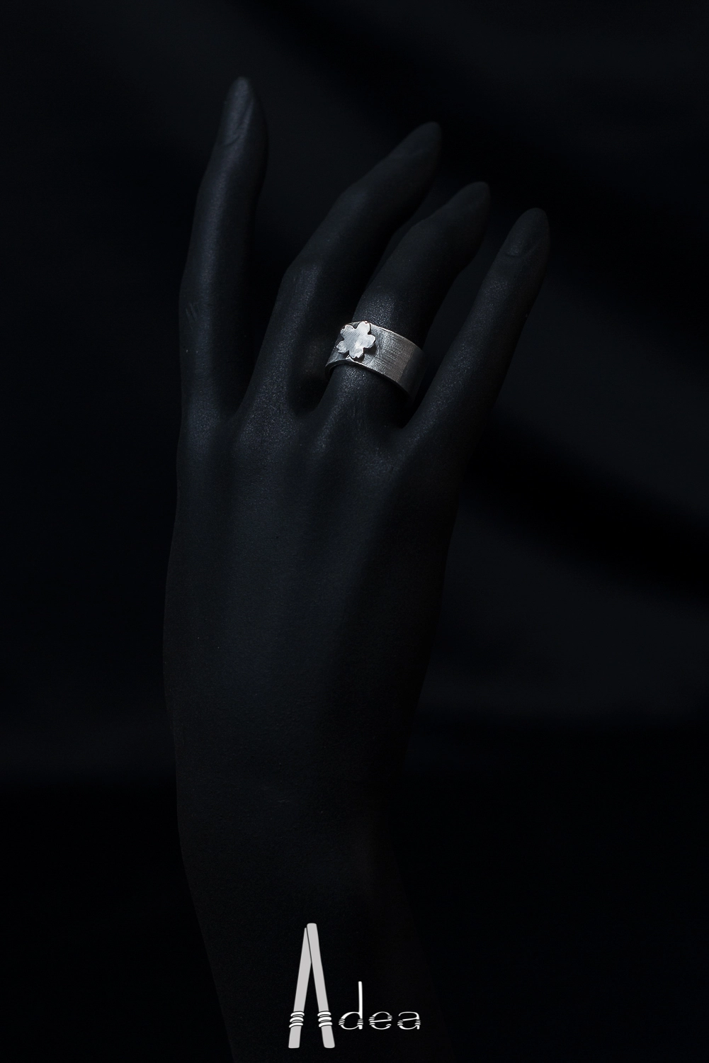 Bague anneau épais et petite fleur.