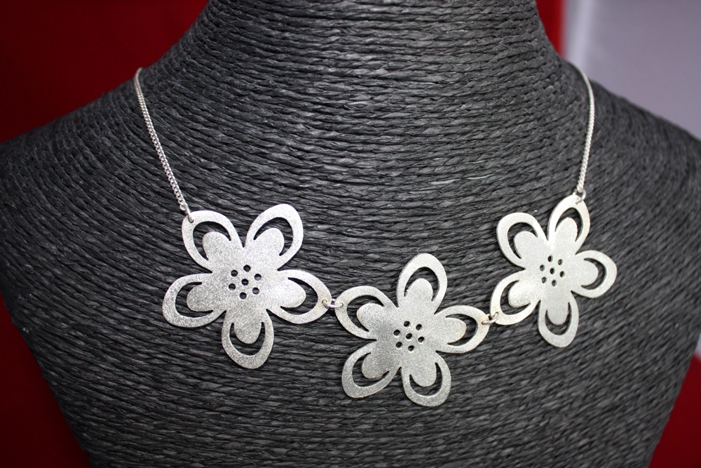 Collier 3 grandes fleurs sablées