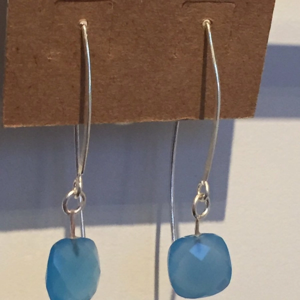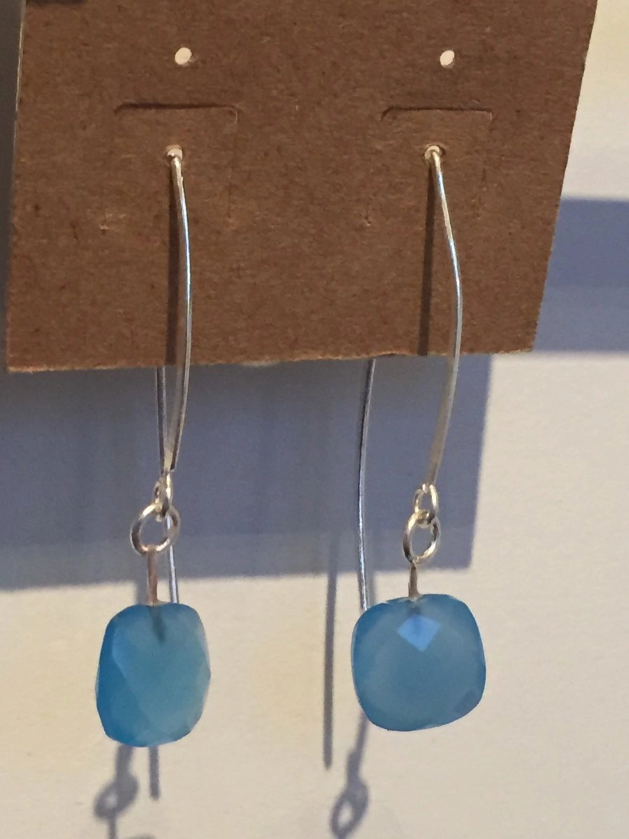 Boucles d'oreilles en argent avec agathe bleue matte.