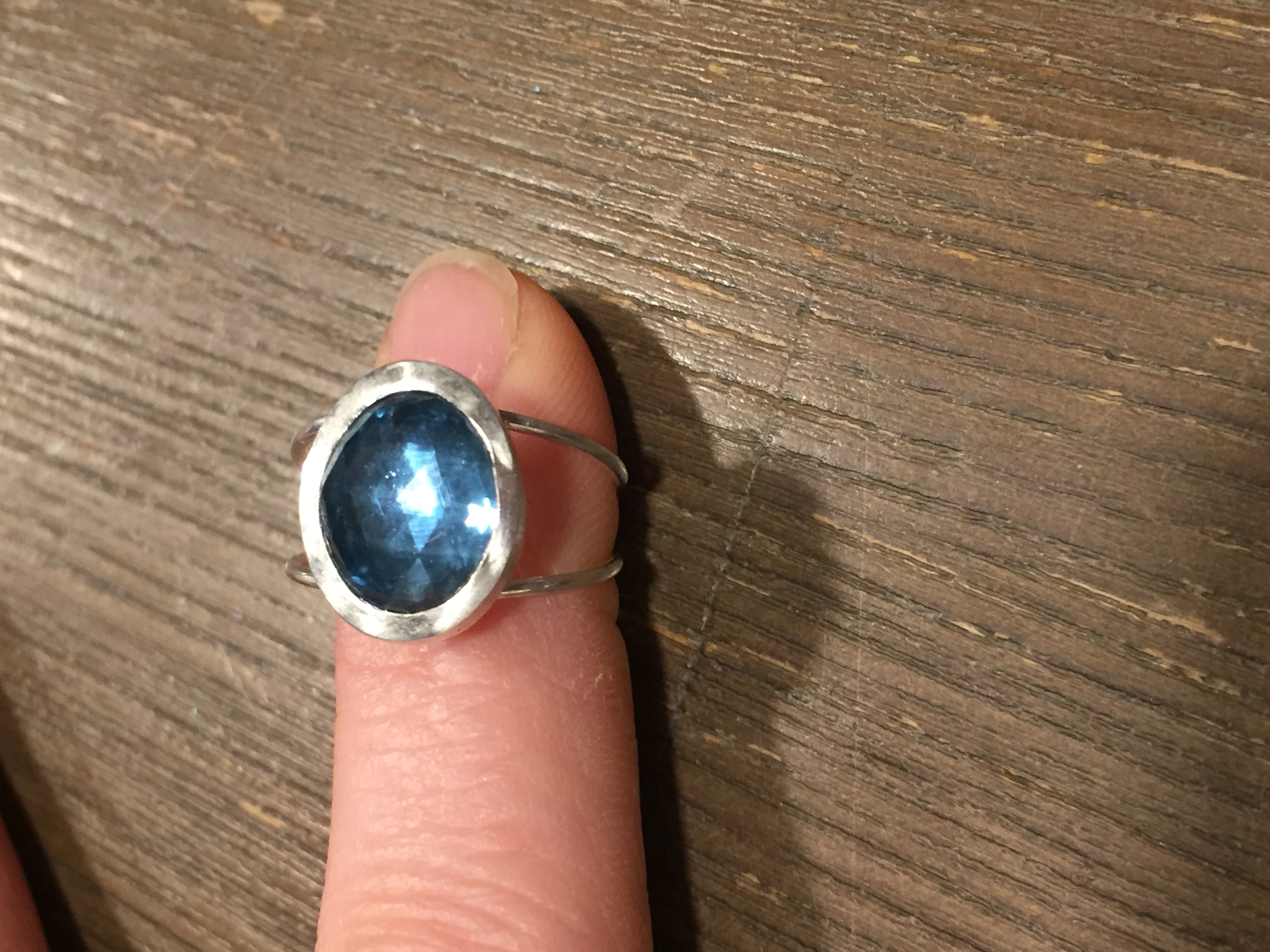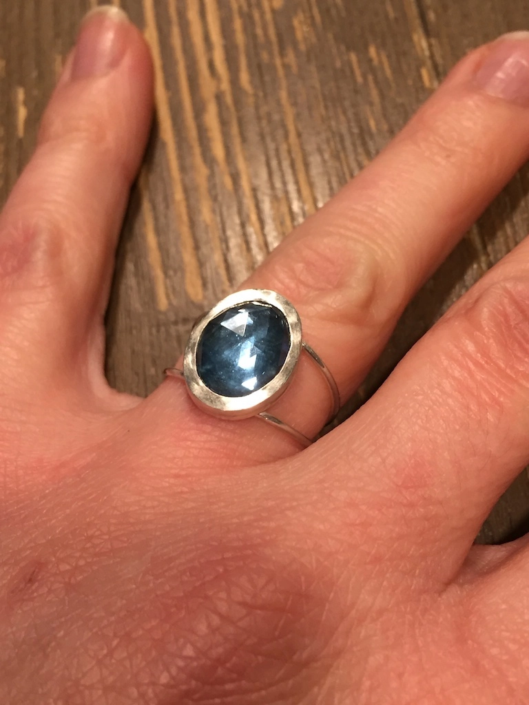 Bague fine avec topaze facettée en cabochon.