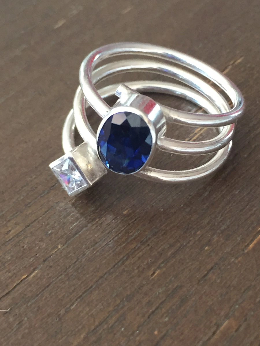 Bague avec 3 zircons bleus