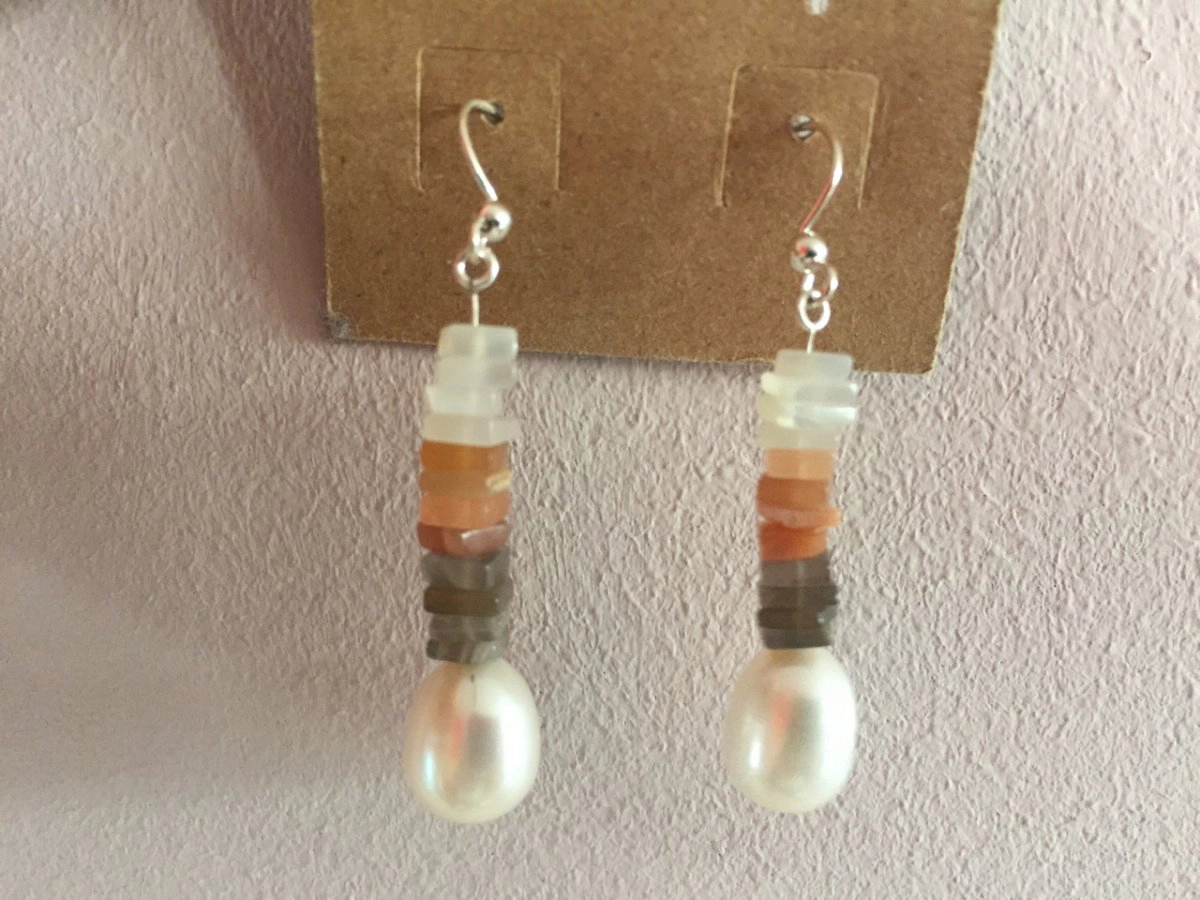 Boucles d'oreilles pendantes avec sélenites et perle d'eau douce