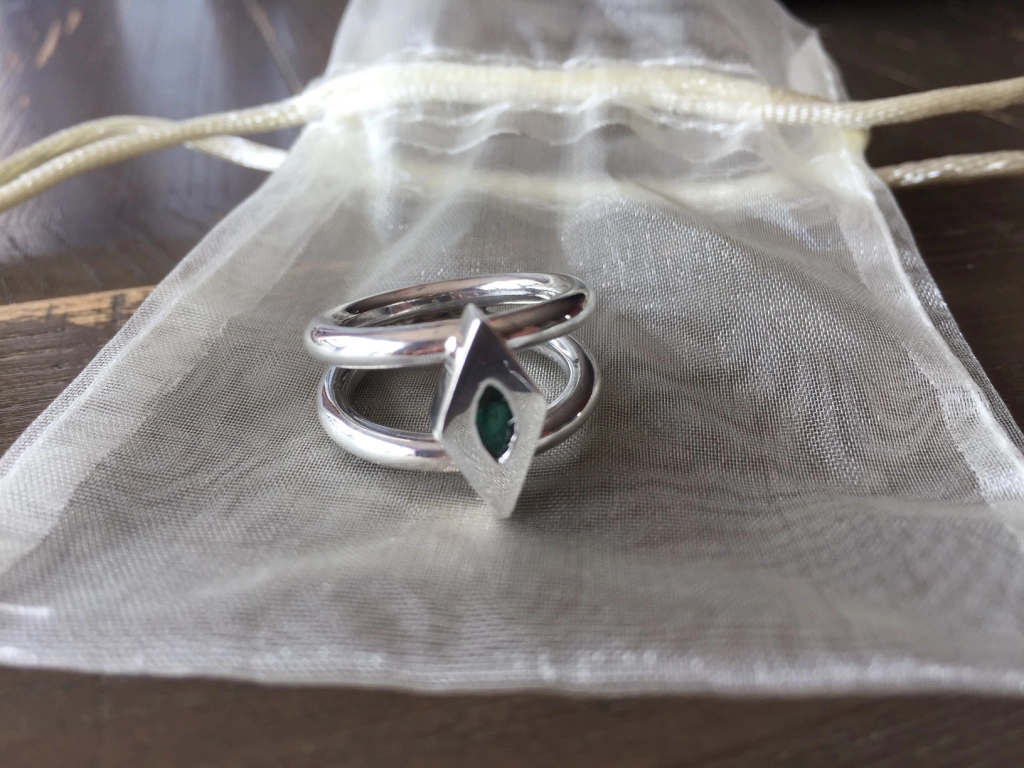 Bague chic en argent sterling surmontée d'un losange incrusté d'une émeraude.