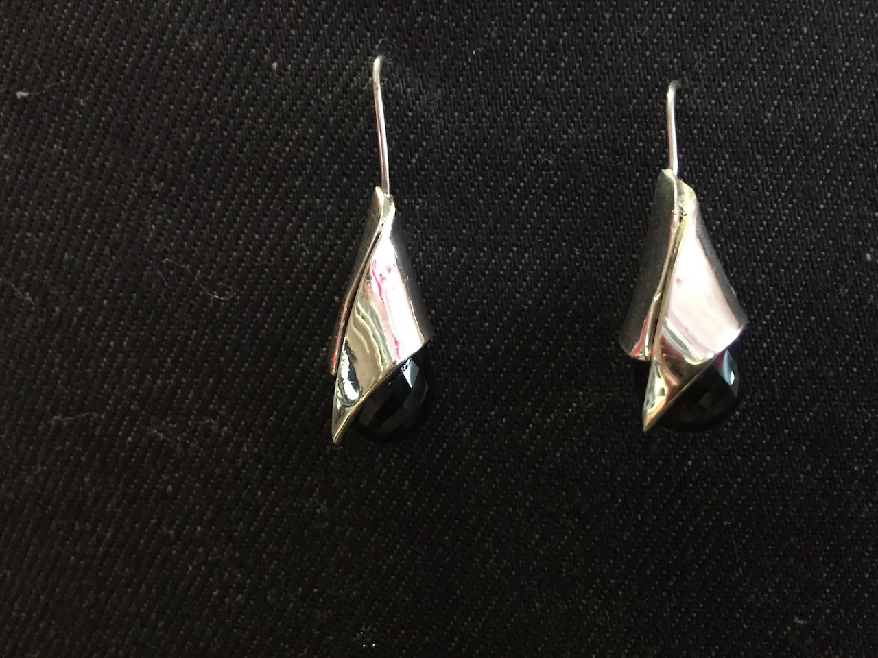 Boucles d'oreilles pendantes en argent sterling avec belle goutte de quartz.
