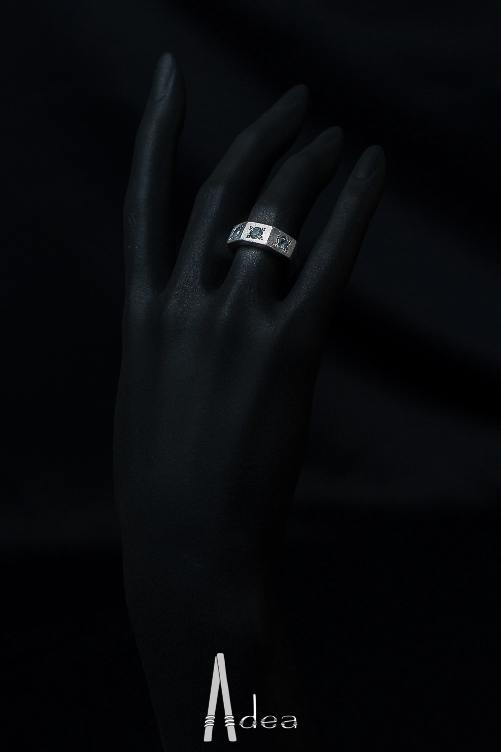 Bague avec 3 zircons bleus